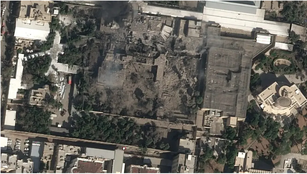 În același carter de lux se află și palatul prezidențial, dar Masoud Pezeshkian (71 de ani) fugise din clădire înaintea bombardamentelor.