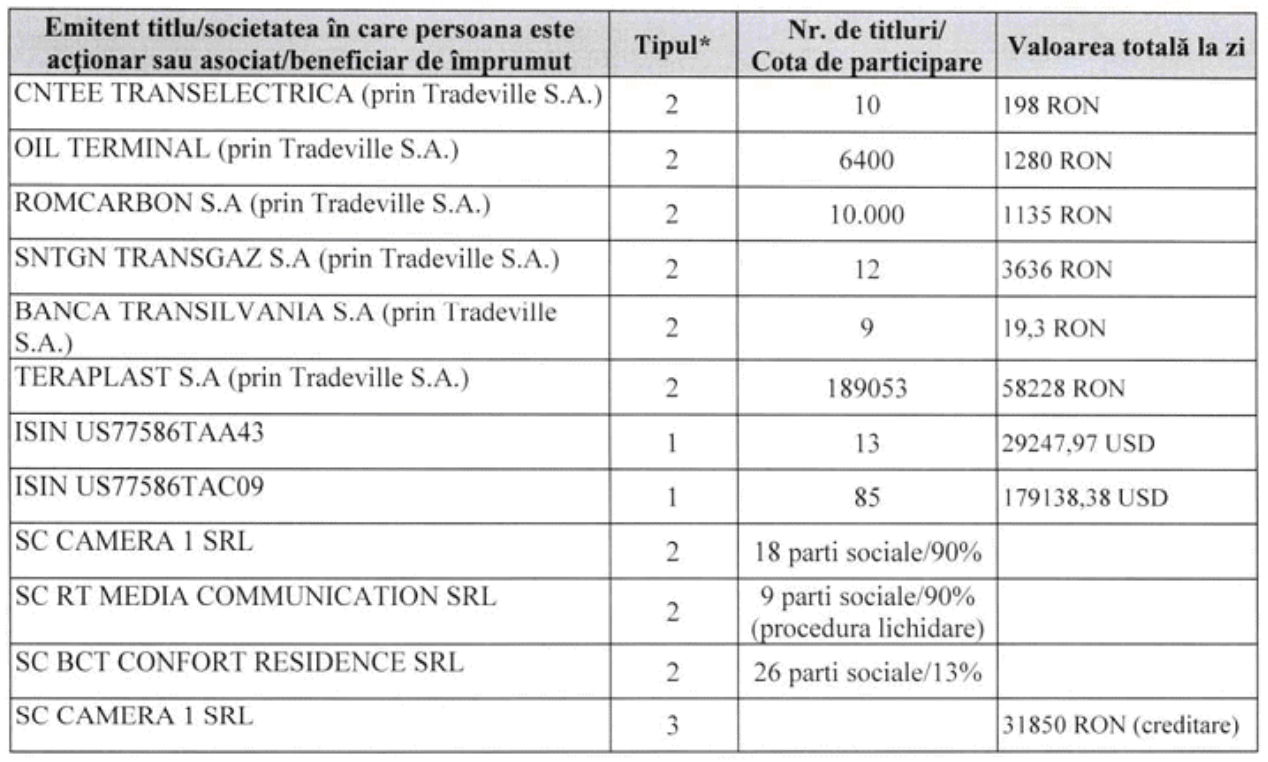 Dacă adăugăm și investițiile financiare de 208.000 de dolari și 96.000 de de lei (echivalentul a 200.000 de euro), rezultă un total de 1,63 milioane de euro.