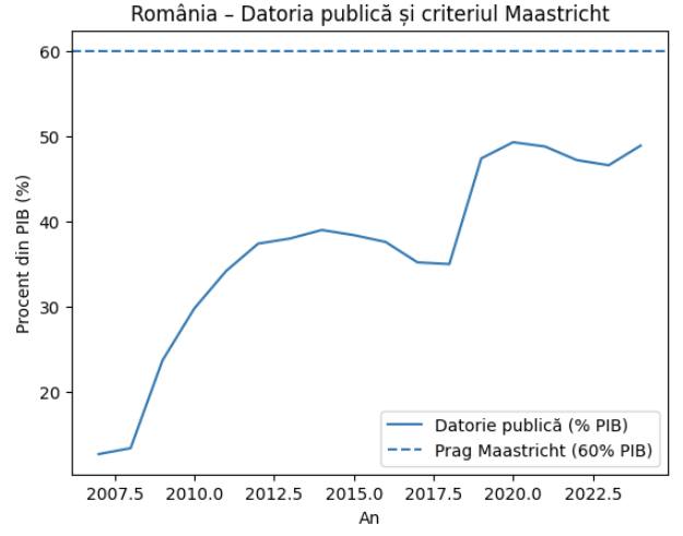 Felicitări Bulgariei! A făcut un pas important spre mai bine, spre lumea civilizată. Vecinilor din sud le va fi mai bine cu euro decât nouă cu leul ăsta inflaționist. Când ei adoptă euro, noi ne luăm adio aproape iremediabil de la asta, datoria publică va sări anul viitor de pragul Maastricht de 60% (din graficul de mai jos veți vedea că niciodată nu a scăzut acest procent, nici nu are cum).