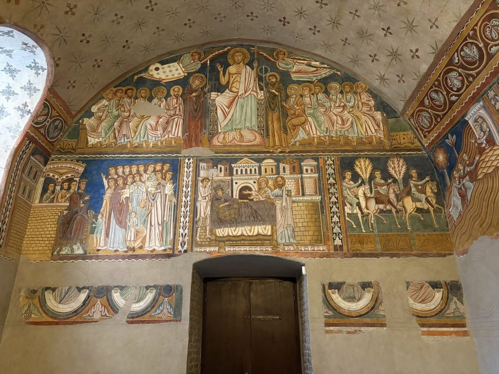 Uniunea Europeană restaurează pretutindeni patrimoniul creștinătății. Aici, biserica Santi Quattro Coronati, fondată în sec. IV, reconstruită în sec. IX, fresce și paviment din sec. XIII.