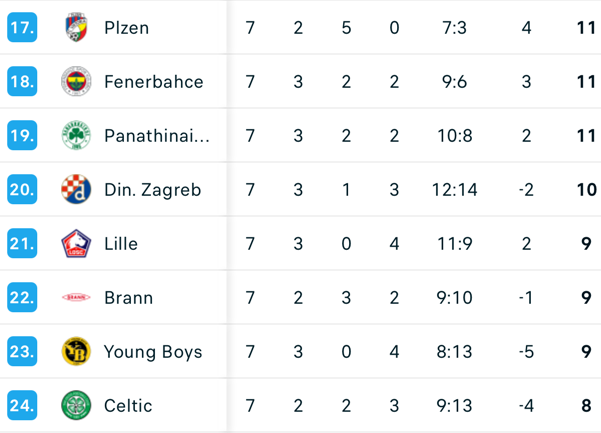 - Celtic (8) – Utrecht (1)