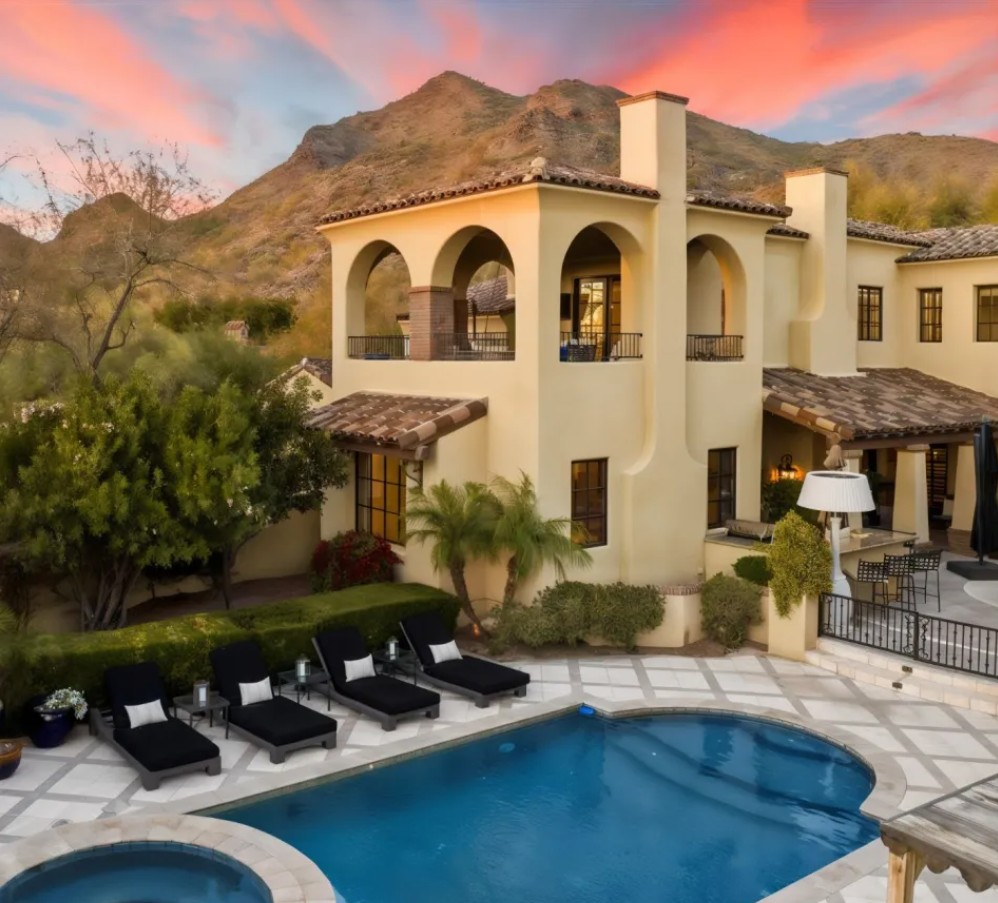 Cea mai impresionantă proprietate este elegantul conac în stil spaniol, în valoare de aproximativ 6,5 milioane dolari, situat în comunitatea exclusivistă Silverleaf din Scottsdale (statul Arizona).