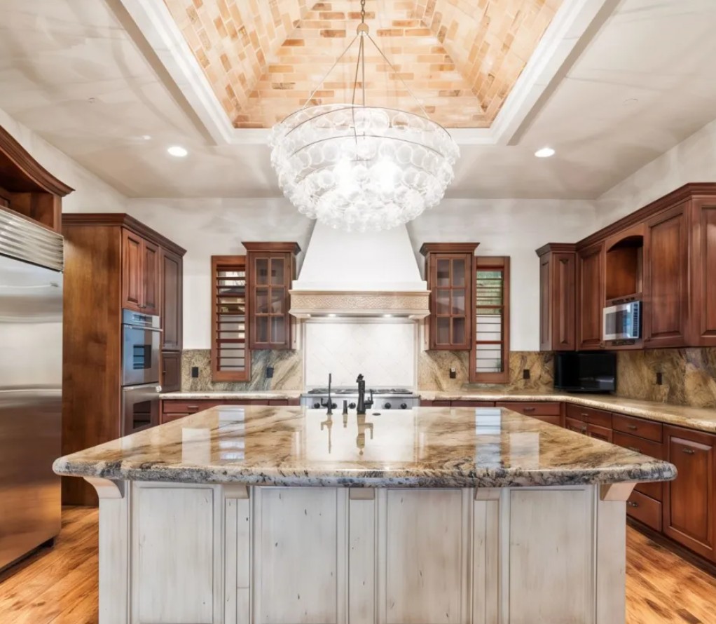 Vila în stil spaniol are „o cameră mare, cu tavan cu grinzi și șemineu, care creează o atmosferă confortabilă și primitoare, în timp ce bucătăria «gourmet» se mândrește cu o insulă masivă, o chiuvetă cu șorț frontal și electrocasnice de ultimă generație. Servind ca refugiu privat, suita principală oferă două dressinguri, o zonă de relaxare și o baie luxoasă cu o cadă”.