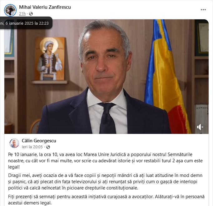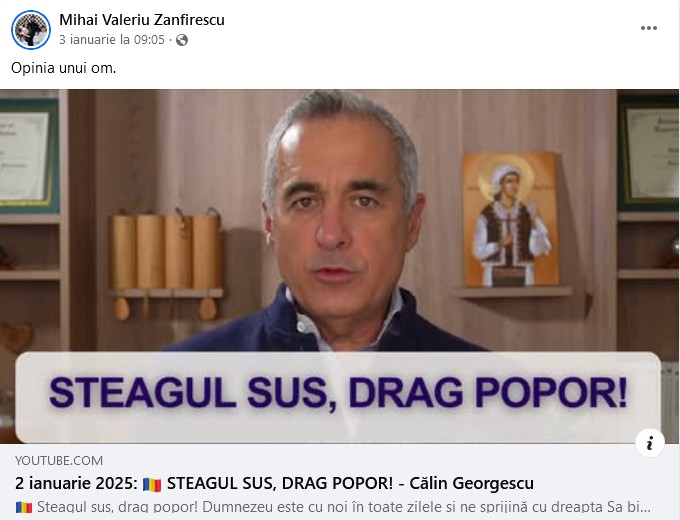 Oferim aici câteva din imaginile cu postările pro-Georgescu deversate în rețelele de socializare de preotul-propagandist Mihai Valeriu Zanfirescu aka „Mega de la Craiova”.