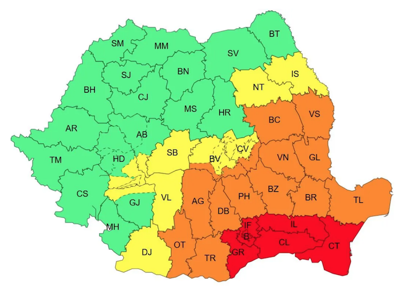 Alte 12 județe, plus zone muntoase din Brașov și Covasna, au fost plasate sub cod portocaliu.