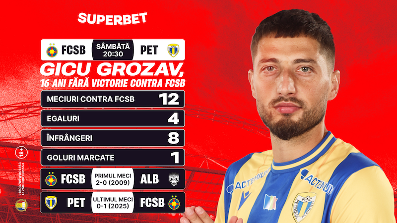 Cel mai important fotbalist din lotul lui Eugen Neagoe, fostul internațional român își propune, pe final de carieră, să obțină totuși un succes contra clubului roș-albastru. De-a lungul anilor petrecuți în fotbalul românesc, Grozav a înfruntat FCSB cu Unirea Alba Iulia, U Cluj, Petrolul și Dinamo, dar n-a reușit să iasă învingător din nicio confruntare: 4 înfrângeri, 8 remize și un singur gol marcat într-o rivalitate pe care a început-o în urmă cu 16 ani!