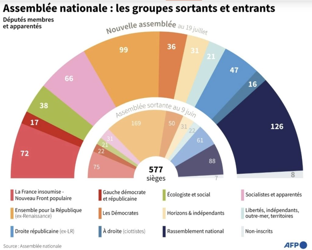 Analizând graficul care urmează – componența Parlamentului francez înainte și după dizolvarea sa –, îți piere cheful de alegeri anticipate în România.