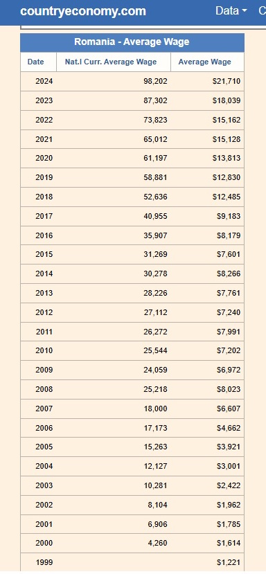Salariul mediu net în România era 1.055 de euro/lună în 2024. Între timp, el a trecut de 1.100. Trebuie ținut cont și că România are printre cele mai mari taxări ale veniturilor din muncă în Europa. Impozitele medii în UE, pe salarii, sunt de 22%, noi avem peste 40%.