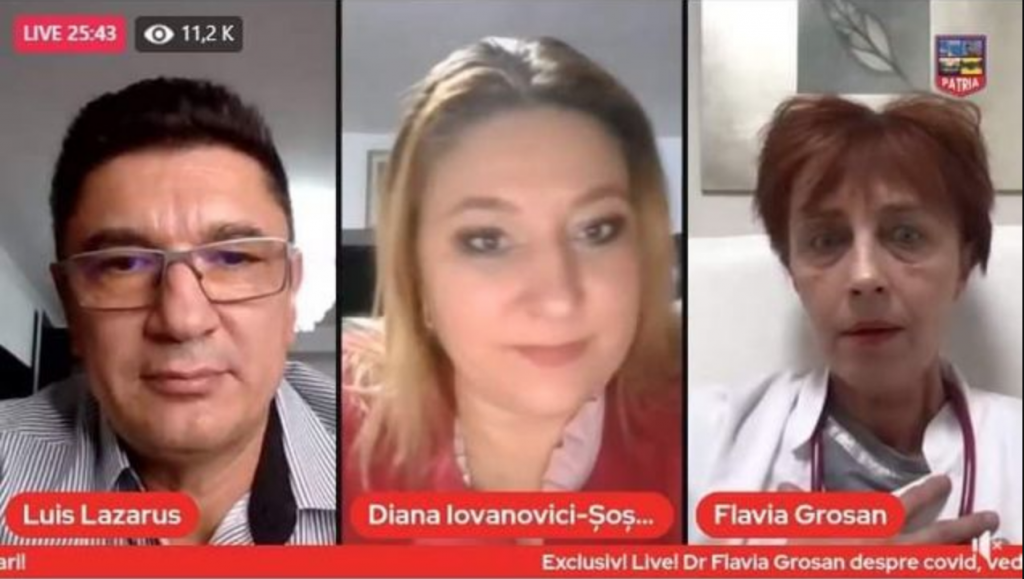 18 martie: Flavia Groșan e fericită să-și debiteze aberațiile în „emisiunea” lui Luis Lazarus, alături de Diana Șoșoacă. 100% anarhiști conspiraționiști.