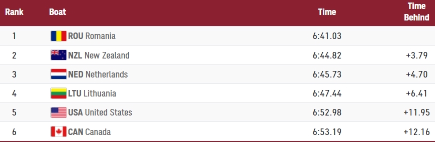 Deși nu erau cotați printre favoriții la medalii, români s-au descurcat excelent și au terminat Finala A cu timpul de 5 min 43 sec 13/100.