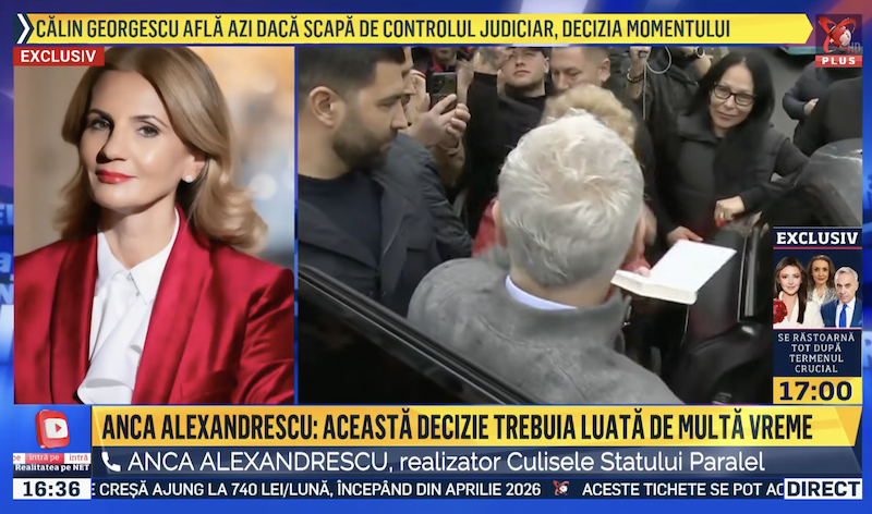 Decizia Tribunalului București, de vineri după-amiază, de a-l scoate de sub control judiciar pe șarlatanul Călin Georgescu a provocat sărbătoare la televiziunea rusofilă Realitatea Plus. Pe Anca Alexandrescu au podidit-o lacrimile (de fericire), iar un invitat permanent a văzut semnul divinității. Amândoi sunt foști vajnici PSD-iști, deveniți „suveraniști”!