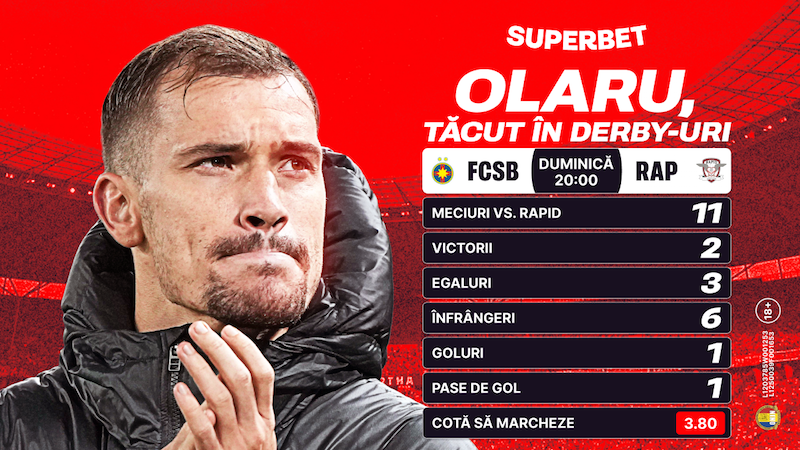 Va schimba căpitanul FCSB-ului cursul? Pe Superbet găsești o cotă de 3,80 pentru un gol al lui Olaru, dar și un mic plus pentru gazde: cotă 2,07 în dreptul FCSB, 3,45 pentru X și 3,75 pentru un succes al liderului.