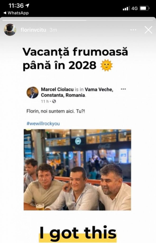 Sâmbătă, Marcel Ciolacu (președinte PSD) și Sorin Grindeanu (prim-vicepreședinte PSD) au postat o fotografie în care se aflau pe terasa unui restaurant în stațiunea Vama Veche, la un pahar cu bere, alături de Daniel Georgescu, primarul PSD al comunei Limanu (de care aparține Vama Veche), cu mesajul ironic: „Florin, noi suntem aici. Tu?!”.