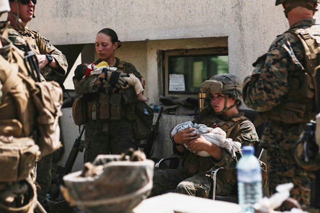Unii părinți afgani au reușit să-și predea copiii, știind că oriunde în lume este acum mai sigur pentru ei decât în Afganistan. Imaginile militarilor american care țineau bebeluși în brațe, după ce le fuseseră înmânați peste sârma ghimpată de pe gardul de beton al aeroportului, au provocat un impact imens în lume.