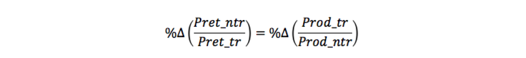 Altfel spus, modificarea în timp a productivității relative în sectoarele tranzacționabile și netranzacționabile se reflectă în mod direct în modificarea în timp a raportului dintre prețurile produselor (aici se face referire în general la bunuri și servicii, fără o delimitare clară) netranzacționabile și cele tranzacționabile.