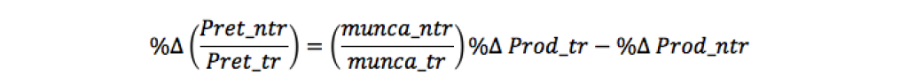 unde %Δ arată modificarea procentuală a celor două rapoarte în timp, tr și ntr se referă la bunuri tranzacționabile, respectiv netranzacționabile, în timp ce cu Prod am notat productivitatea.