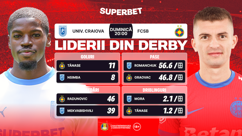 AcasăPariuri sportiveLiderii din derby-ul Univ. Craiova – FCSB. Cum arată Cotele Superbet pentru...