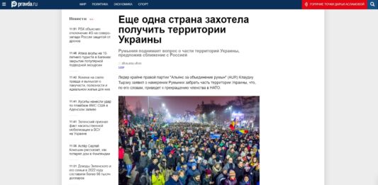 Declarațiile făcute de senatorul Claudiu Târziu la Iași, unde a cerut anexarea de către România a patru regiuni din Ucraina și ieșirea țării noastre din NATO, au fost preluate masiv de mass-media de la Moscova. Presa rusească a citat afirmațiile fruntașului AUR, prezentându-le ca pe o dovadă că și alții gândesc la fel ca Putin. … Continuă lectura Presa rusă preia masiv aberațiile senatorului Claudiu Târziu (AUR), care a cerut public ca România să anexeze 4 regiuni ucrainene, sugerând că ar trebui să ieșim din NATO!