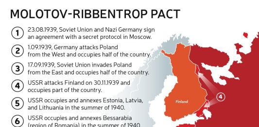 La împlinirea a 83 de ani de la semnarea odiosului pact Ribbentrop – Molotov, Ministerul de Externe de la Moscova a prezentat viziunea scandaloasă, revizionistă și cinică pe care Rusia de azi o are față de acel tratat care a făcut posibilă izbucnirea celui de-Al Doilea Război Mondial. Înțelegerea dintre Hitler și Stalin, prin care … Continuă lectura Rusia despre Pactul Ribbentrop – Molotov: „A ajutat la extinderea graniței de vest a URSS cu circa 350 de kilometri. Nu era în dezacord cu legile internaționale”