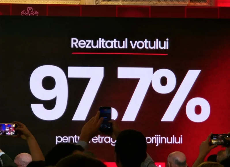 Rezultatul a fost previzibil, iar cifrele seamănă cu cele de la defunctul PCR: 97,7% dintre cei prezenți au votat DA, iar 2,3% – NU.