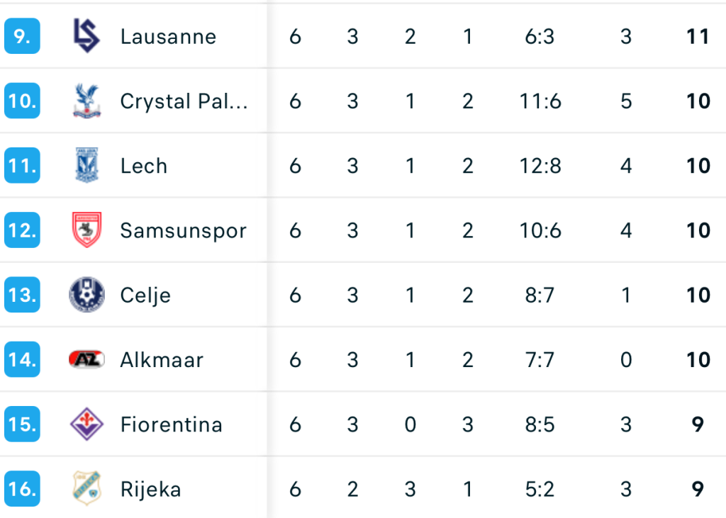 • Crystal Palace (Anglia) – KuPS (Finlanda) 2-2: Deși au deschis scorul încă din minutul 5, iar în min. 76 au egalat (2-2), englezii n-au reușit să dea golul victoriei, care i-ar fi urcat pe locul 8 și i-ar fi calificat direct în „optimi”. Dacă londonezii câștigau, finlandezii ar fi încheiat pe locul 28 (cu 6 puncte), iar Craiova – pe 24.