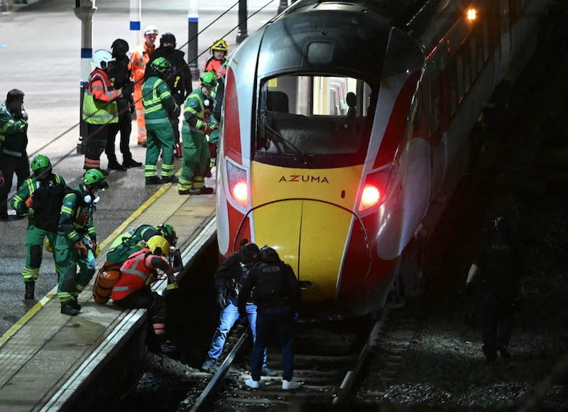 Trenul s-a oprit la Huntingdon, unde ofițeri înarmați au urcând în vagoane. Ulterior, Poliția a comunicat: „Ofițeri înarmați au intervenit, iar trenul a fost blocat la Huntingdon, unde doi bărbați au fost arestați”.