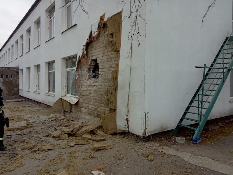 Mărimea și puterea obuzului tras de ruși se pot deduce și din dimensiunea găurii pe care acesta a făcut-o în peretele grădiniței.