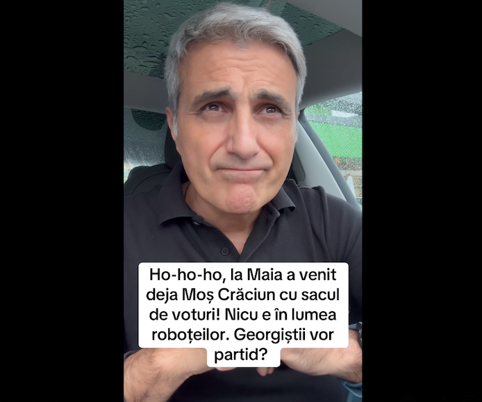 - „La prima oră a dimineții, Nicușor Dan a aflat că în Moldova, fraților, s-a înregistrat o victorie extraordinară. Roboțelul a venit și i-a spus lui Nicușor Dan la ureche: «Domnule președinte, Maia Sandu – partidul ei – a câștigat alegerile parlamentare cu peste 50%». Aaaaa… bă, nene, așa sărea Nicușor Dan prin parc cu roboțelul: «Am câștigat! Am câștigat! E minunat! E minunat!». Numai că, prieteni, încă o victorie ca asta și suntem terminați cu toții!”