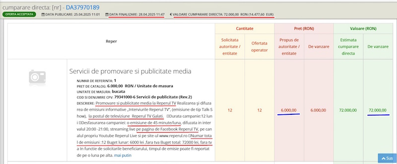 Emisiunea de 45 de minute la care a participat Pucheanu nu este semnalizată cu (Publicitate) sau (P), deși este plătită de Primăria Galați cu 6.000 de lei pe lună.